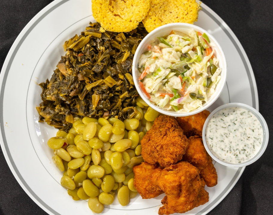 Create your own meal with the Southern Bae. Choose four items, and we'll include BaeBread cornbread. We recommend the Southern collard greens, Mac'n Bae Mac & Cheese ($1 upcharge), apple coleslaw, and Call Me Bae Wings.