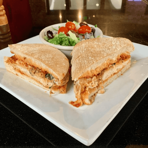 spinach & artichoke in a creamy three cheese sauce, served with warm flat bread