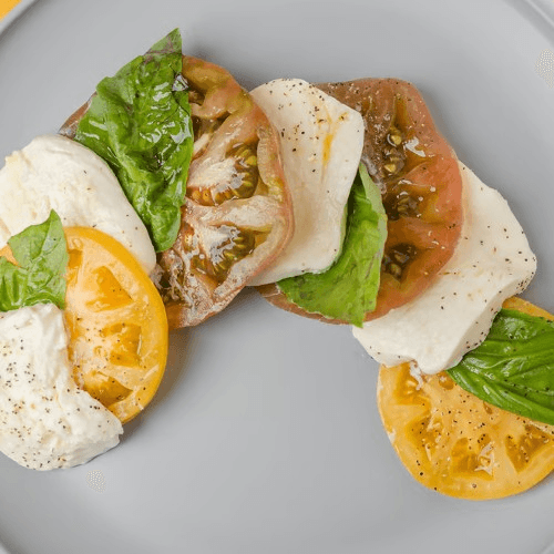 Haas Avocado, fresh mozzarella, arugula, grape tomatoes tossed in a white balsamic vinaigrette