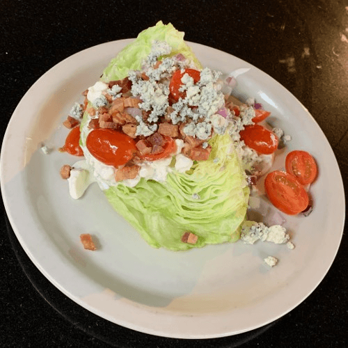 gorgonzola crumbles, candied pecans, mixed greens, red onions, tomatoes & raspberry vinaigrette